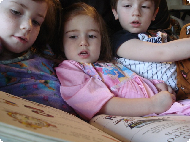 She woke them with kisses and asked them if they wanted “Avery to read them a story while they wait for mama to wake up.” I love when she uses her encouraging teacher voice and talks in third person… I take it in. Thank you, Lord, for producing an encouraging and teaching spirit in my oldest daughter. Thank you for creating joy in her to love her brother and sister. She is admirable, and they do admire her. Plus she is funny- and they love to laugh. Thank you, Lord.